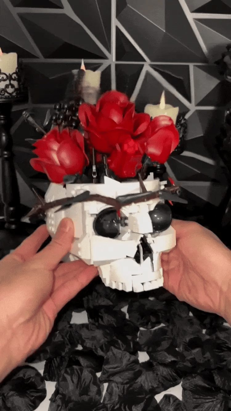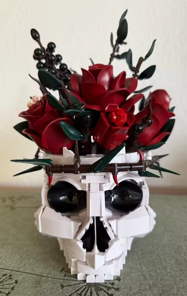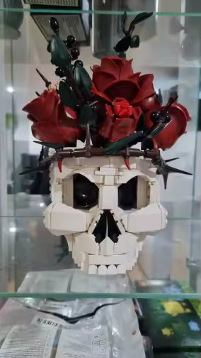 Inside the box, you’ll find over 1079 precision cut pieces, each one crafted to bring the GothBrix Skull Rose Build to life. From the intricately layered deep red roses to the vine-wrapped crown of thorns, this isn’t just a building kit, it’s an experience.